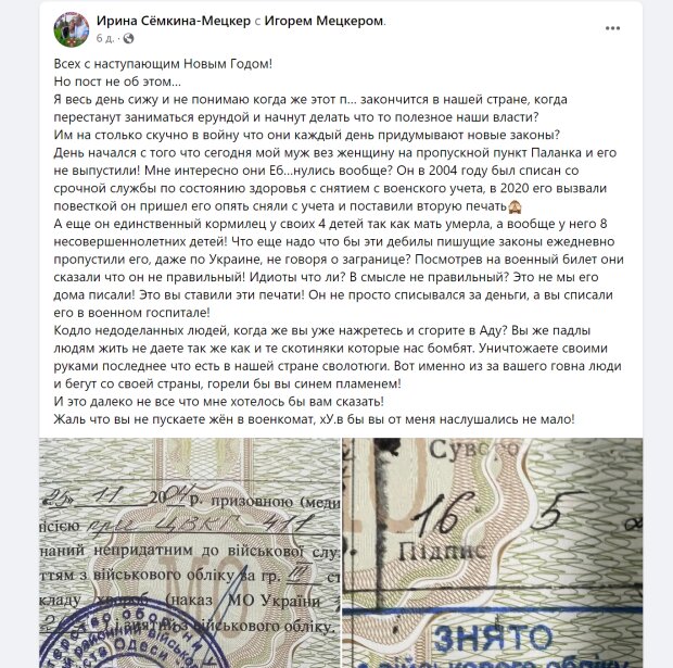 И пока законопроект рассматривается, некоторых мужчин, которые пока еще не подлежат призыву, заграницу не выпускают. Так и случилось с отцом 8 детей. Об этом сообщила жена мужа Ирина Семкина-Мецкер на своей странице Facebook.