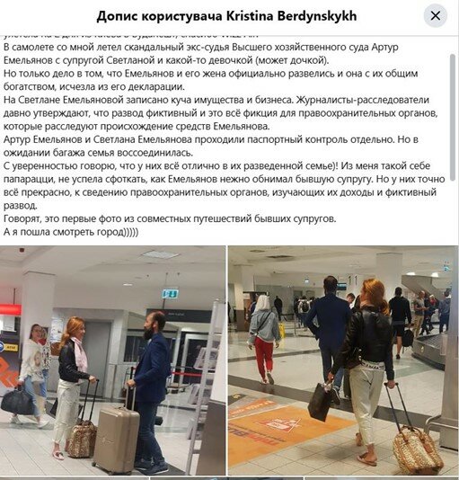 Наприкінці вересня-2024 стало відомо про обшуки у Ємельянова. Зокрема, правоохоронці проводили слідчі дії на понад 10 адрес, у тому числі й будинки у екс-судді. При цьому, за даними журналістських розслідувань, колишня дружина Ємельянова володіє елітною нерухомістю в різних куточках світу. Розлучення пари при цьому називали фіктивним.