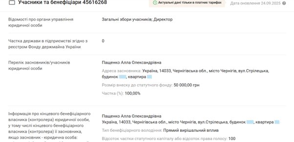Але будь-яка схема потребує прикриття. Дружина бізнесмена, Алла Олександрівна (у різних документах також фігурує як Гулбіс або Василенко), формально є власницею ресторану «Ля Опера бар» в центрі Чернігова. Саме на неї оформлений бізнес, який у звичайному місті мав би бути просто закладом харчування, але в історії Пащенка стає частиною прикриття.